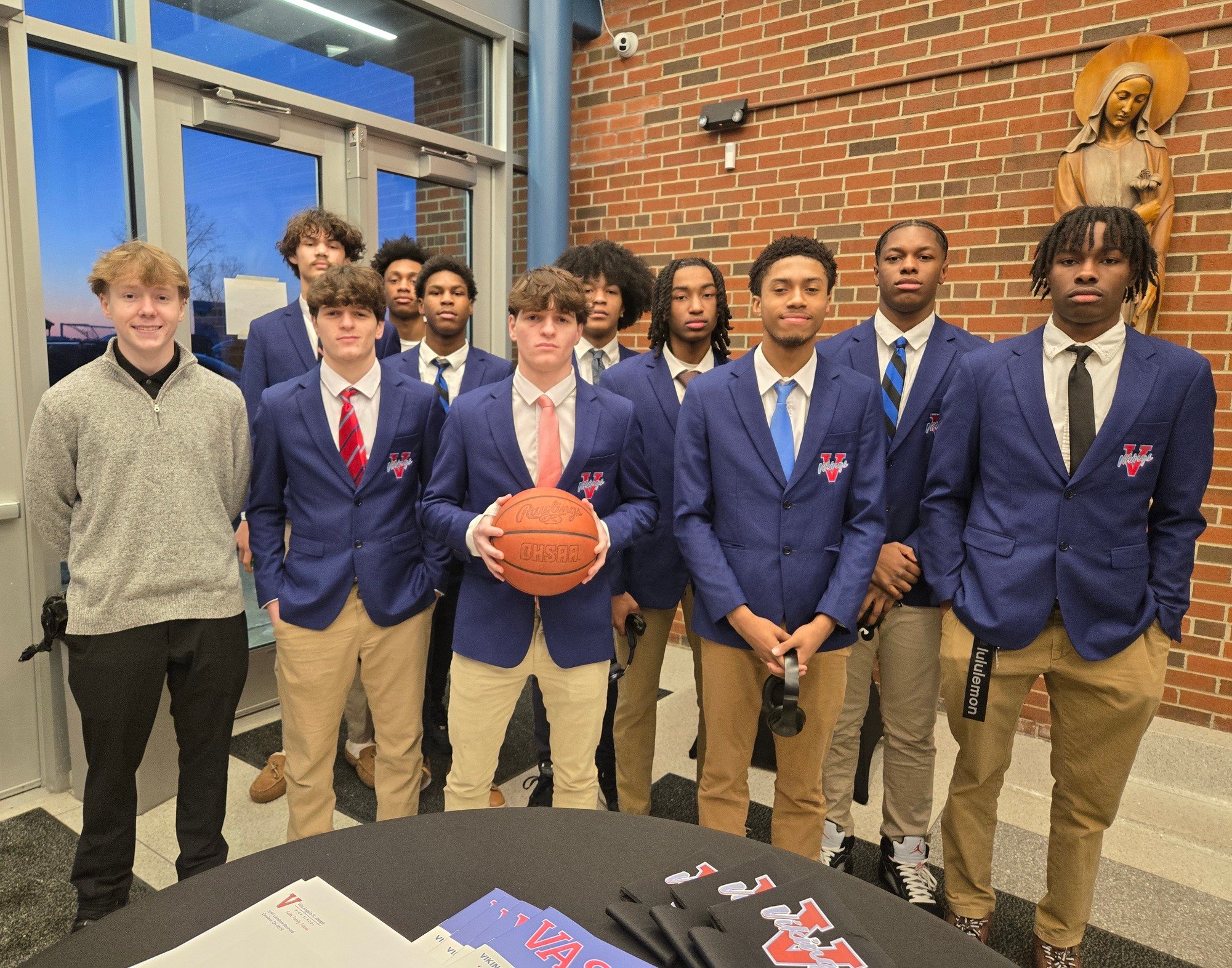 Alums from St. Joseph High School, Villa Angela Academy and VASJ were treated to a free pizza social in the school atrium before heading into the Gym to watch the Vikings take on the NDCL Lions. Our alums brought good luck, as the Vikings defeated the Lions by a final score of 88-81.